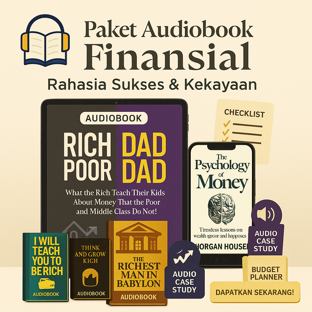 Produk digital adalah file yang bisa langsung Anda unduh dan gunakan, tanpa perlu pengiriman fisik. Contohnya seperti eBook (PDF), audiobook (MP3/streaming), template Excel, atau desain Canva.